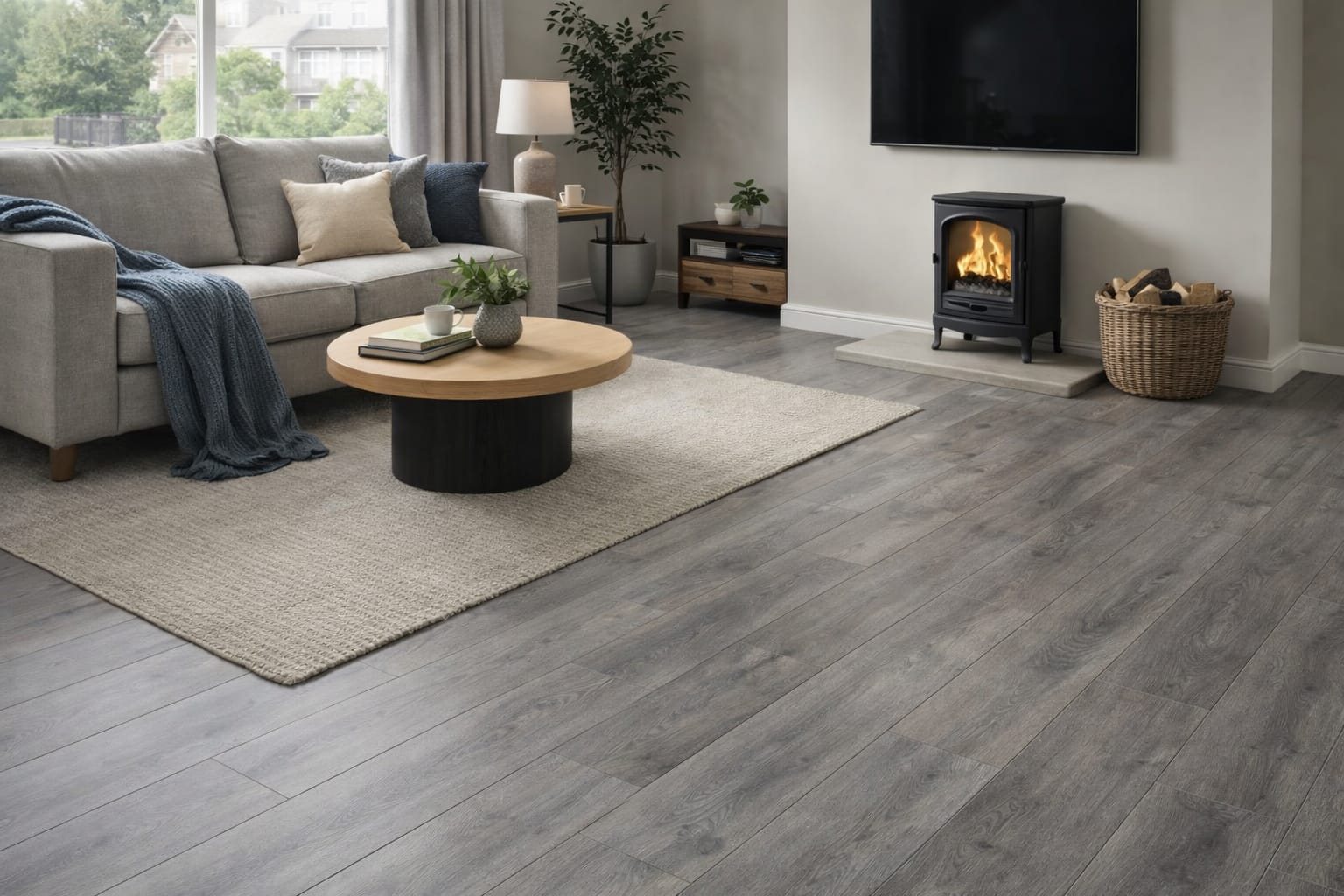 A modern soft grey oak finish with subtle wood grain detailing, designed to give a clean, contemporary look. The balanced grey tones work beautifully in both light and dark interiors, creating a stylish, spacious feel while maintaining a natural wood appearance.