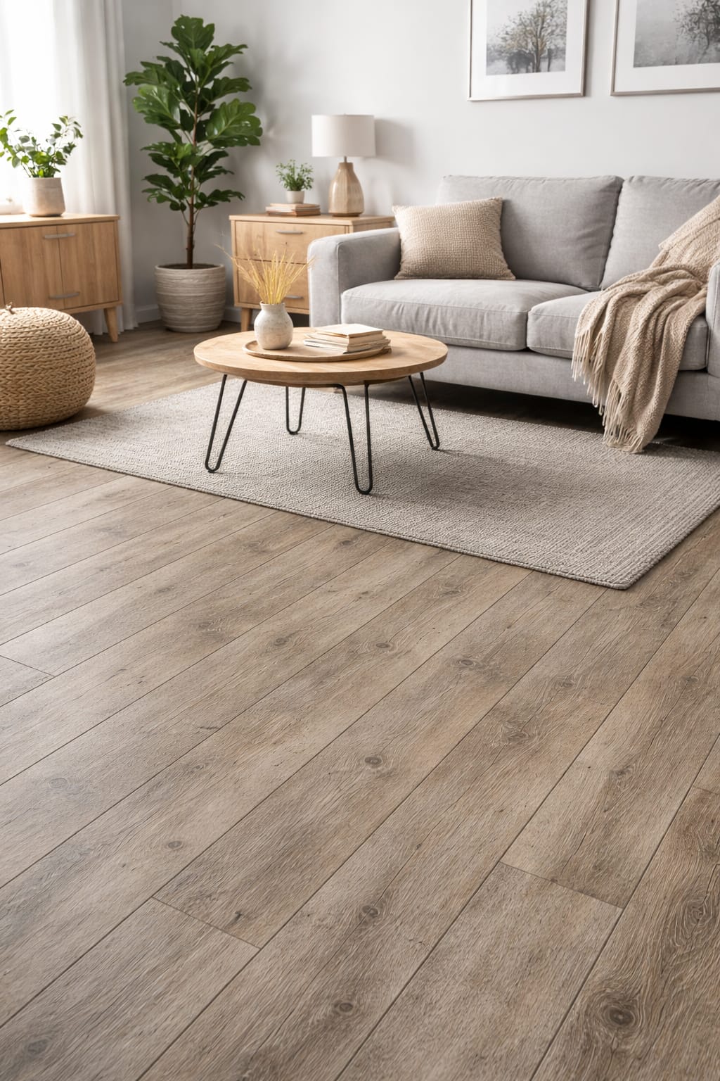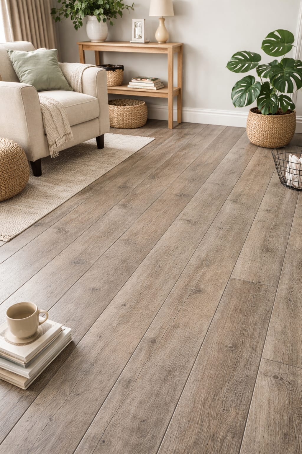 A soft rustic brown oak with natural weathered tones and detailed grain variation, giving an authentic reclaimed wood look. The warm beige-brown shades create a cosy, lived-in feel that adds character and depth to both modern and traditional interiors.